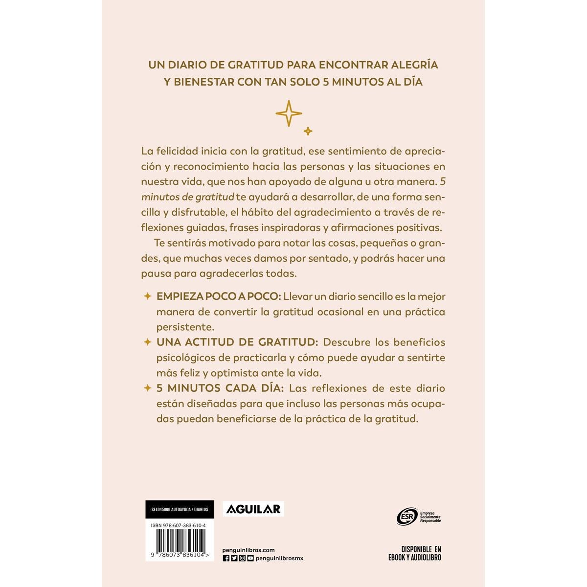 La felicidad inicia con la gratitud, ese sentimiento de apreciación y reconocimiento hacia las personas y las situaciones en nuestra vida, que nos han apoyado de alguna u otra manera. 5 minutos de gratitud te ayudará a desarrollar, de una forma sencilla y disfrutable, el hábito del agradecimiento a través de reflexiones guiadas, frases inspiradoras y afirmaciones positivas. Te sentirás motivado para notar las cosas, pequeñas o grandes, que muchas veces damos por sentado, y podrás hacer una pausa para agradecerlas todas.