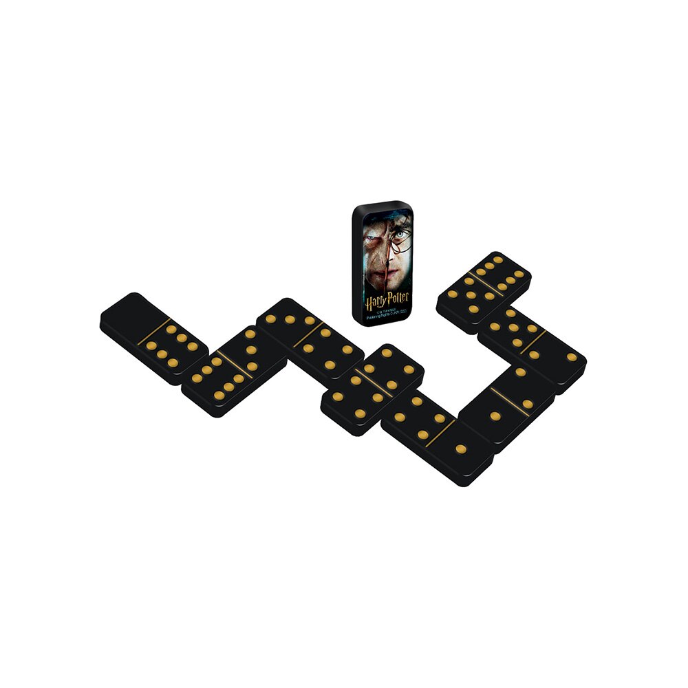 Dominó en pasta dura con 28 fichas con denominaciones en puntos y un increíble diseño de Harry Potter ideal para coleccionistas sus medidas 11x4x16 material pasta y metal.