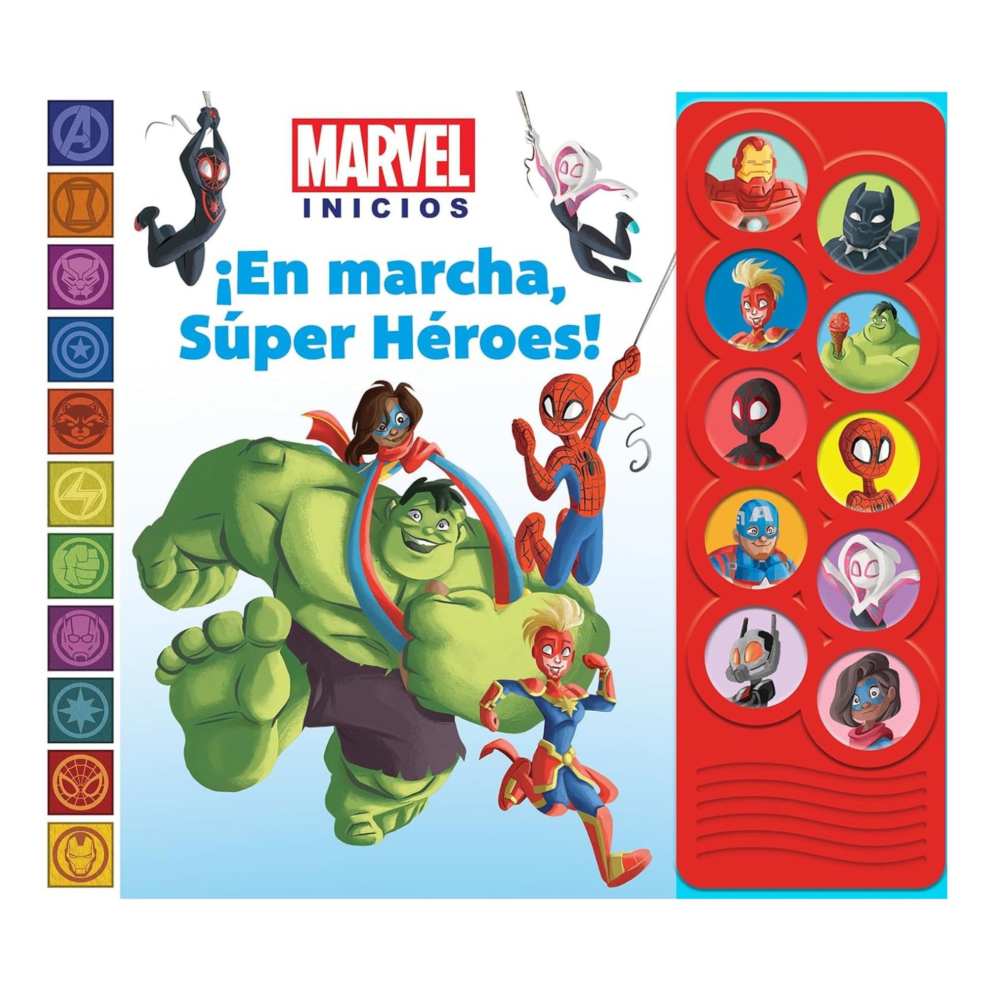 Ponte en movimiento con Spider-Man y sus amigos Súper Héroes. Incluye 10 botones con sonidos de acción.