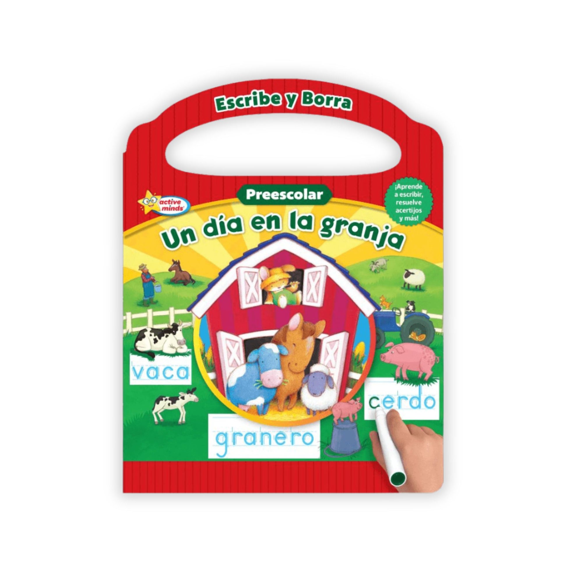 Escribe y Borra Un día en la Granja , Busca y encuentra mientras aprendes a leer, escribir y contar, 20 páginas de actividades, lee datos curiosos en todas las páginas práctica, borra y practica otra vez, el Libro contiene 1 marcador borrable.
