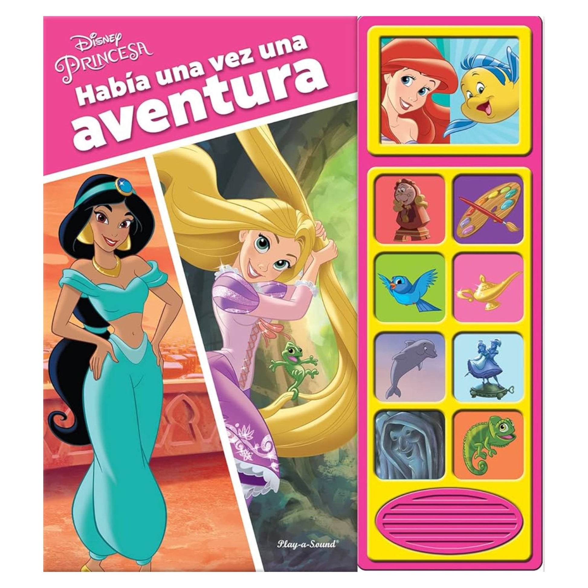 Había una vez una aventura... ¡Acompaña a las Princesas Bella, Jasmín, Ariel, Pocahontas y Rapunzel a explorar el mundo que les rodea! Este libro es especial porque relacionar las palabras con imágenes y sonidos mejora la compresión lectora, levantar las tapitas potencia las habilidades motoras finas y porque las historias de princesas fomentan la imaginación, la exploración y la curiosidad. Libro con 10 emocionantes sonidos y con tapitas para levantar en cada página.